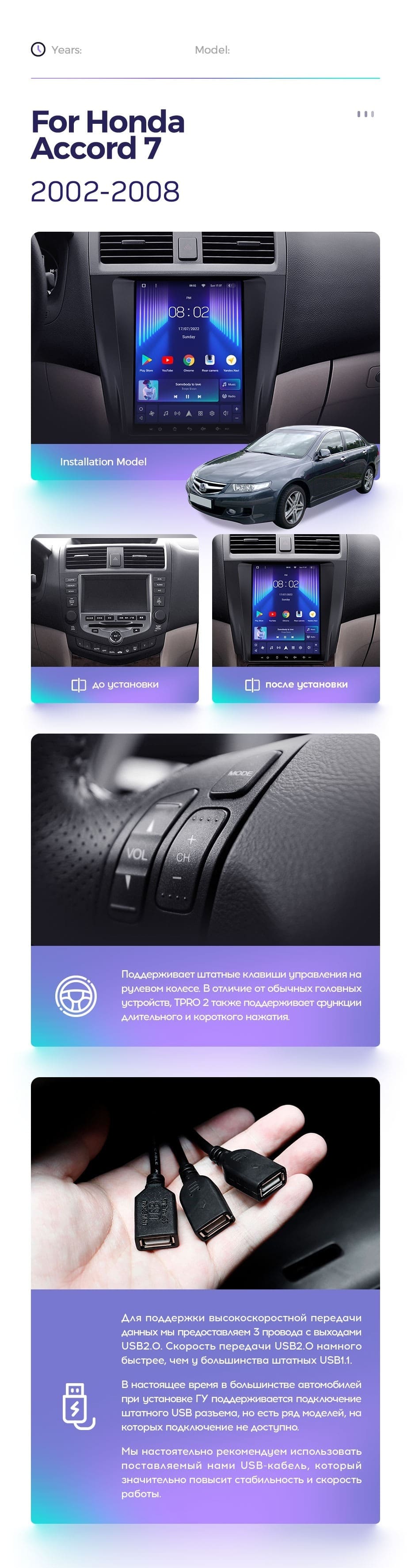 Штатная магнитола Tesla style Teyes TPRO 2 4/64 Honda Accord 7 CM UC CL (2002-2008) - купить всего за 43 100 руб. в интернет-магазине в Ростове Teyes.com.ru. ✓ Самый лучший выбор мультимедиа ✓ Лучшая замена штатному ГУ ✓ Тел. +7 (800) 775-31-74
