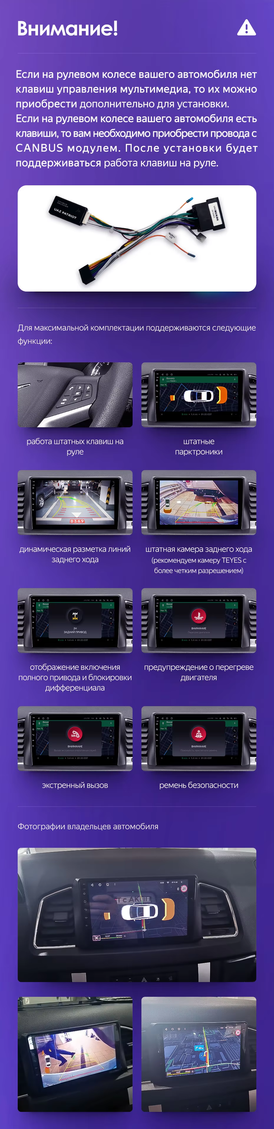 Штатное отображение парктроников, динамических линий и информации о полном приводе т прочее будет работать?
