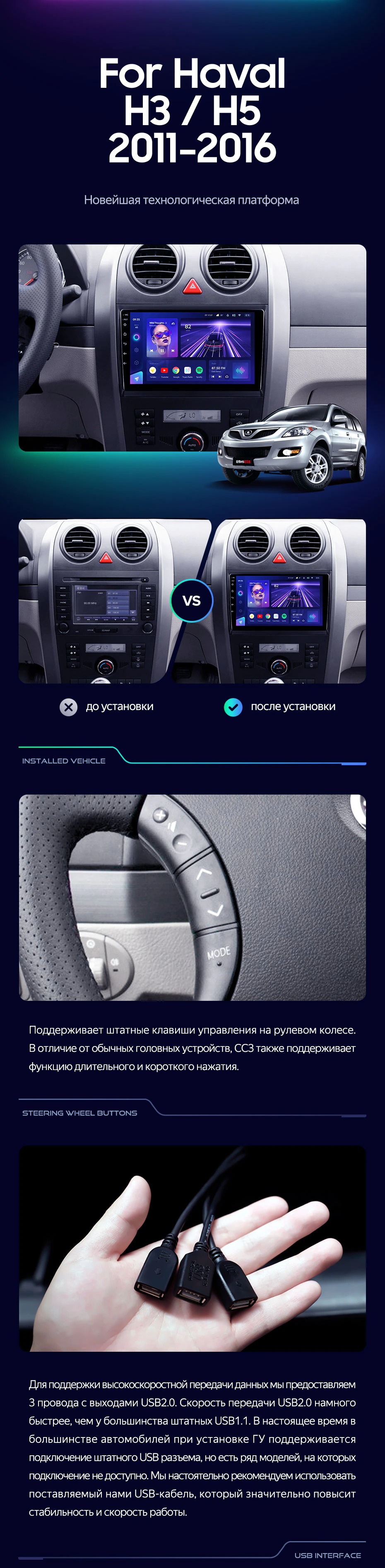 Штатная магнитола Teyes CC3 2K 360 6/128 Great Wall Hover H3 H5 (2011-2016) (13") - купить всего за 60 540 руб. в интернет-магазине в Ростове Teyes.com.ru. ✓ Самый лучший выбор мультимедиа ✓ Лучшая замена штатному ГУ ✓ Тел. +7 (800) 775-31-74