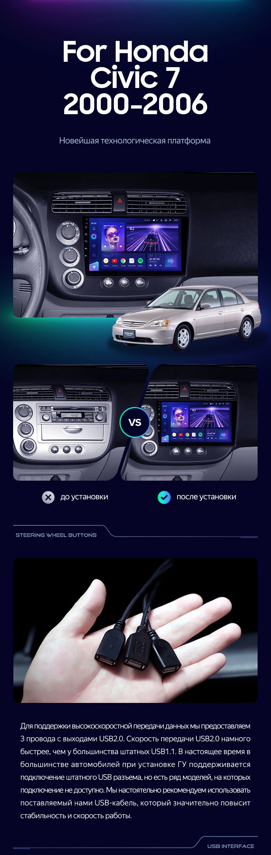 Штатная магнитола Teyes CC3 2K 360 6/128 Honda Civic 7 (2000-2006) F1 (13") - купить всего за 61 000 руб. в интернет-магазине в Ростове Teyes.com.ru. ✓ Самый лучший выбор мультимедиа ✓ Лучшая замена штатному ГУ ✓ Тел. +7 (800) 775-31-74