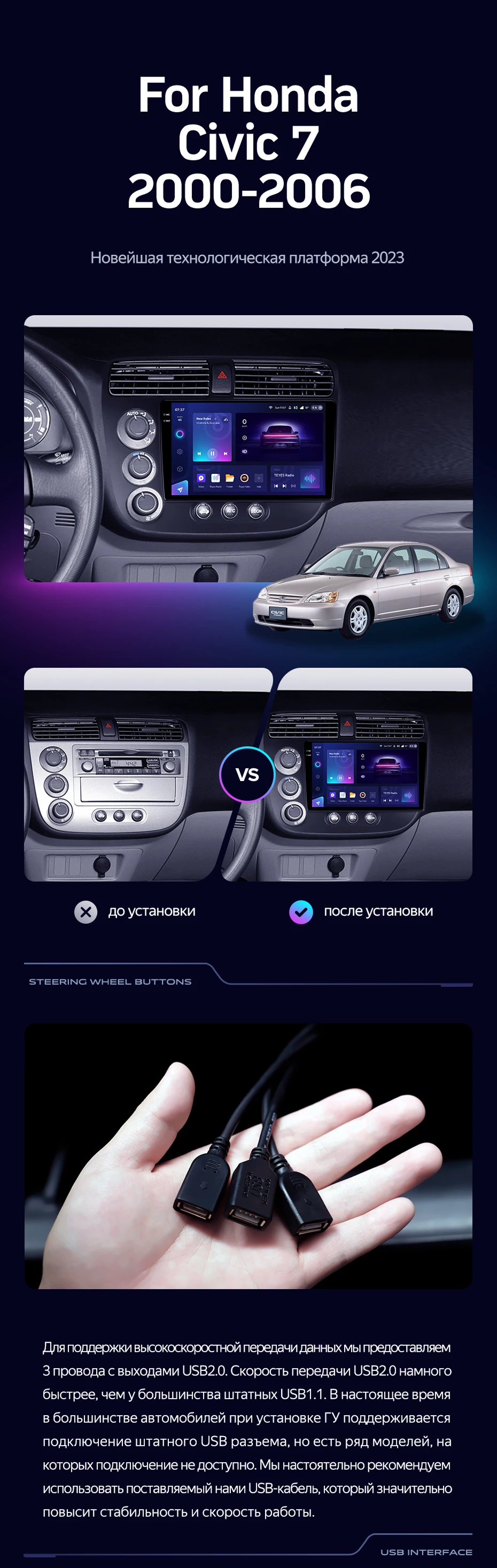Штатная магнитола Teyes CC3 2K 360 6/128 Honda Civic 7 (2000-2006) F3 Правый руль - купить всего за 54 700 руб. в интернет-магазине в Ростове Teyes.com.ru. ✓ Самый лучший выбор мультимедиа ✓ Лучшая замена штатному ГУ ✓ Тел. +7 (800) 775-31-74