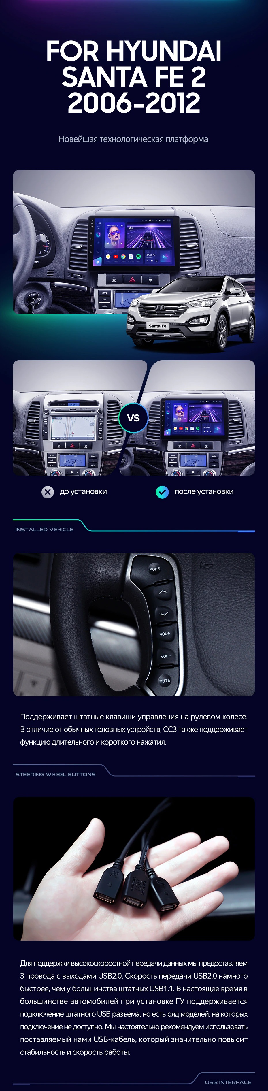 Штатная магнитола Teyes CC3 2K 360 6/128 Hyundai Santa Fe 2 (2006-2012) (13") - купить всего за 50 960 руб. в интернет-магазине в Ростове Teyes.com.ru. ✓ Самый лучший выбор мультимедиа ✓ Лучшая замена штатному ГУ ✓ Тел. +7 (800) 775-31-74