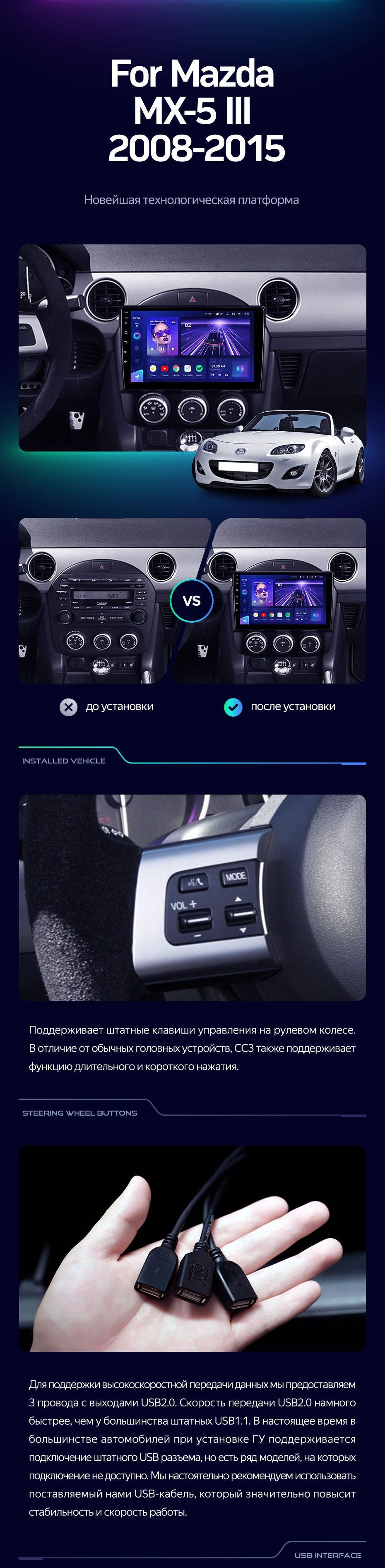 Штатная магнитола Teyes CC3 2K 360 6/128 Mazda MX-5 (2008-2015) - купить всего за 60 120 руб. в интернет-магазине в Ростове Teyes.com.ru. ✓ Самый лучший выбор мультимедиа ✓ Лучшая замена штатному ГУ ✓ Тел. +7 (800) 775-31-74