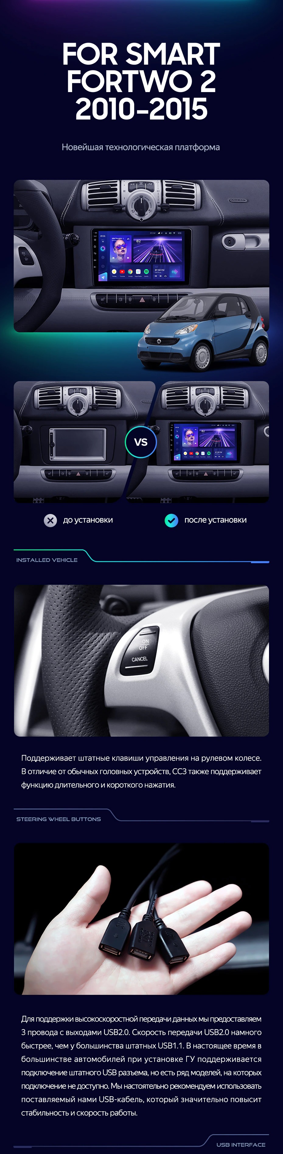 Штатная магнитола Teyes CC3 2K 4/64 Mercedes-Benz Smart Fortwo 2 (2010-2015) F1 (13") - купить всего за 43 000 руб. в интернет-магазине в Ростове Teyes.com.ru. ✓ Самый лучший выбор мультимедиа ✓ Лучшая замена штатному ГУ ✓ Тел. +7 (800) 775-31-74