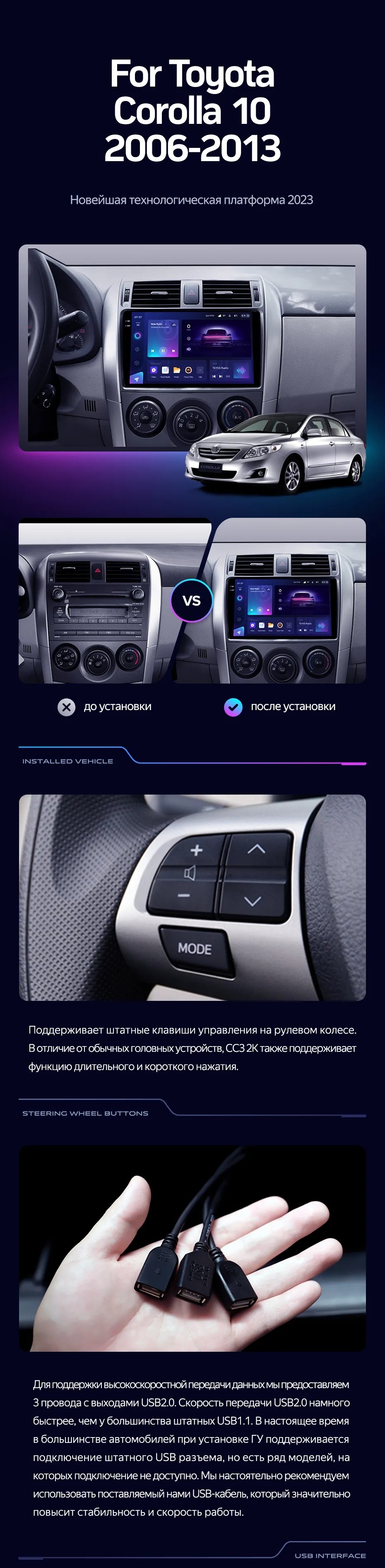 Штатная магнитола Teyes CC3 2K 4/64 Toyota Corolla 10 E140 E150 (2006-2013) Тип-A - купить всего за 45 720 руб. в интернет-магазине в Ростове Teyes.com.ru. ✓ Самый лучший выбор мультимедиа ✓ Лучшая замена штатному ГУ ✓ Тел. +7 (800) 775-31-74