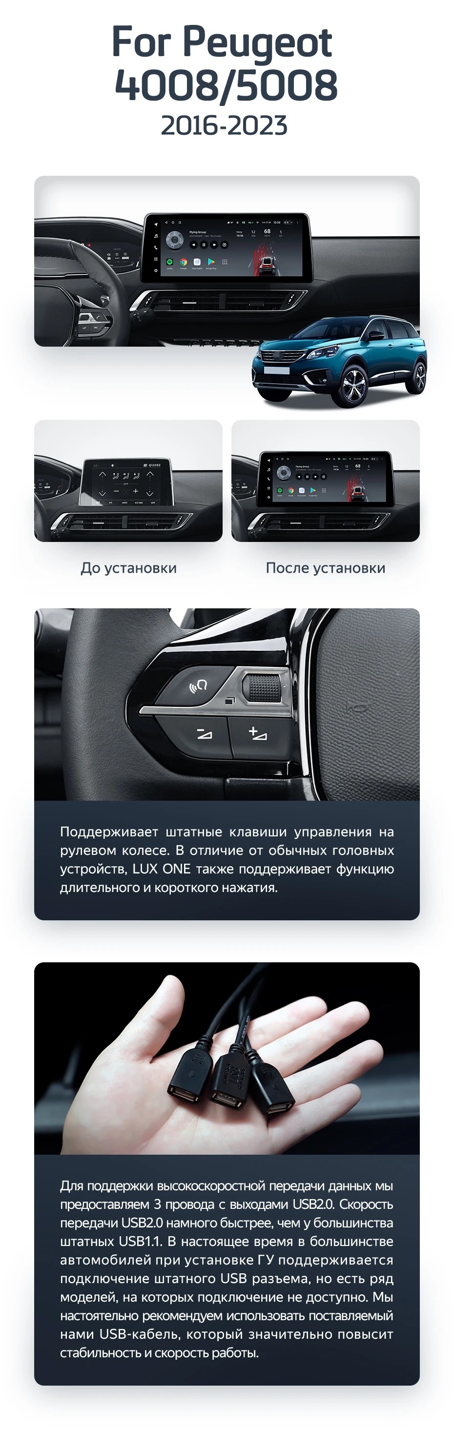 | Дополнительные аксессуары | USB-видеорегистратор, TPMS, передние парктроники, диагностический адаптер OBD | USB-видеорегистратор, TPMS, передние парктроники, диагностический адаптер OBD | USB-видеорегистратор, TPMS |