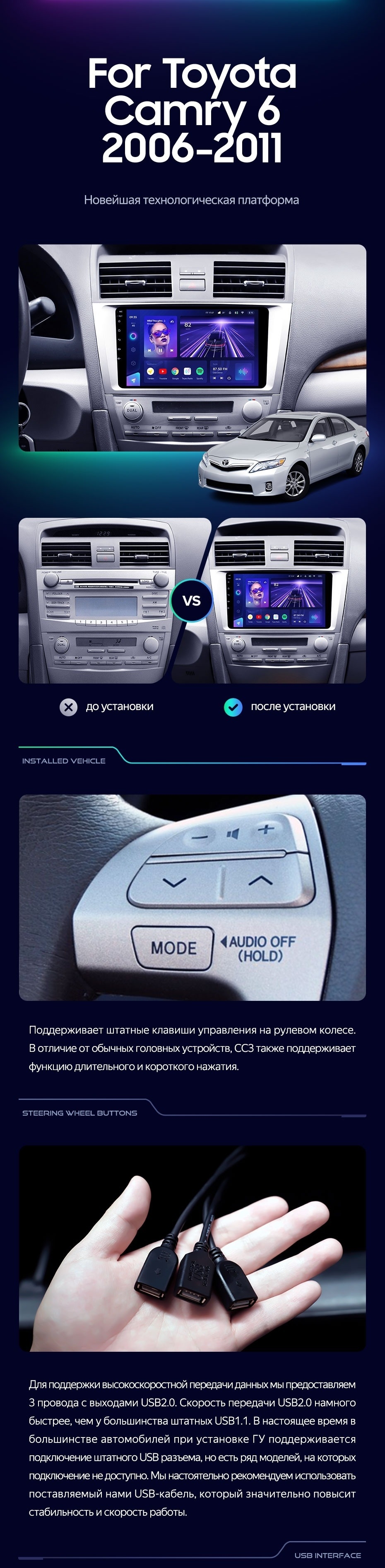 Штатная магнитола Teyes CC3 2K 6/128 Toyota Camry 6 XV 40 (2006-2011) 10" F5 - купить всего за 53 550 руб. в интернет-магазине в Ростове Teyes.com.ru. ✓ Самый лучший выбор мультимедиа ✓ Лучшая замена штатному ГУ ✓ Тел. +7 (800) 775-31-74