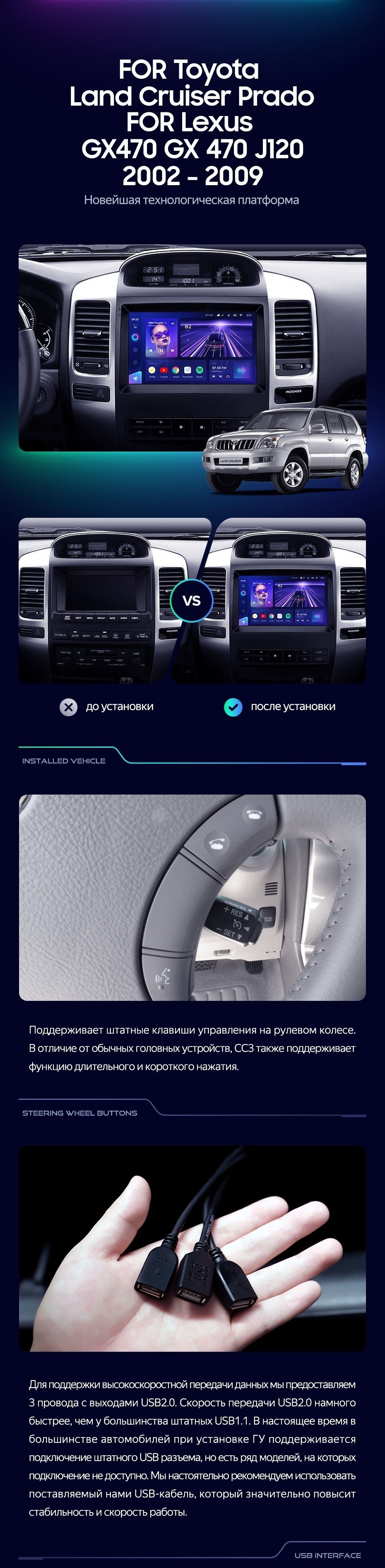 Штатная магнитола Teyes CC3 2K 6/128 Toyota Land Cruiser Prado J120 (2002-2009) F1 Тип-A - купить всего за 52 200 руб. в интернет-магазине в Ростове Teyes.com.ru. ✓ Самый лучший выбор мультимедиа ✓ Лучшая замена штатному ГУ ✓ Тел. +7 (800) 775-31-74