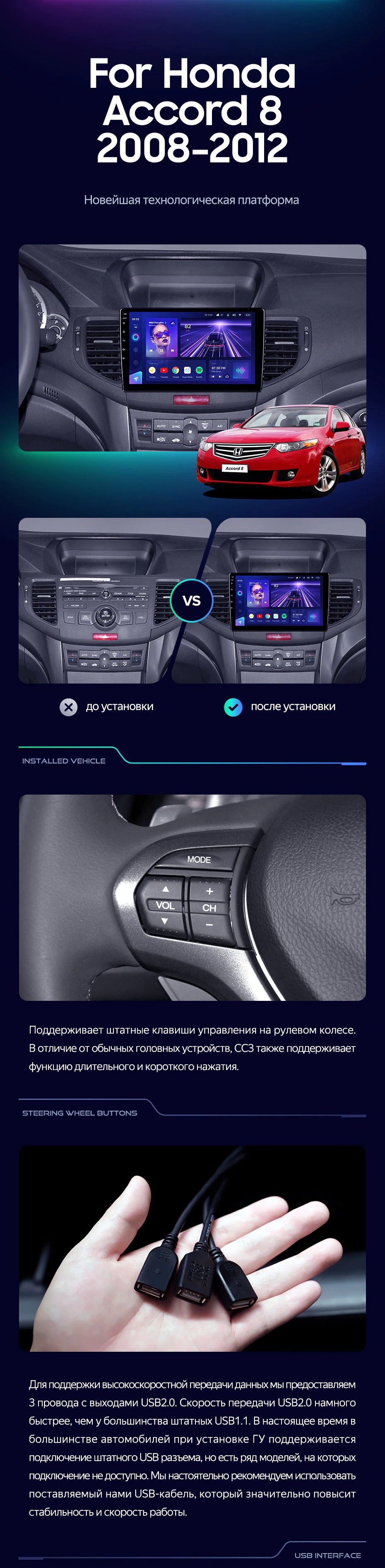 Штатная магнитола Teyes CC3 4/32 Honda Accord 8 (2008-2012) - купить всего за 38 500 руб. в интернет-магазине в Ростове Teyes.com.ru. ✓ Самый лучший выбор мультимедиа ✓ Лучшая замена штатному ГУ ✓ Тел. +7 (800) 775-31-74