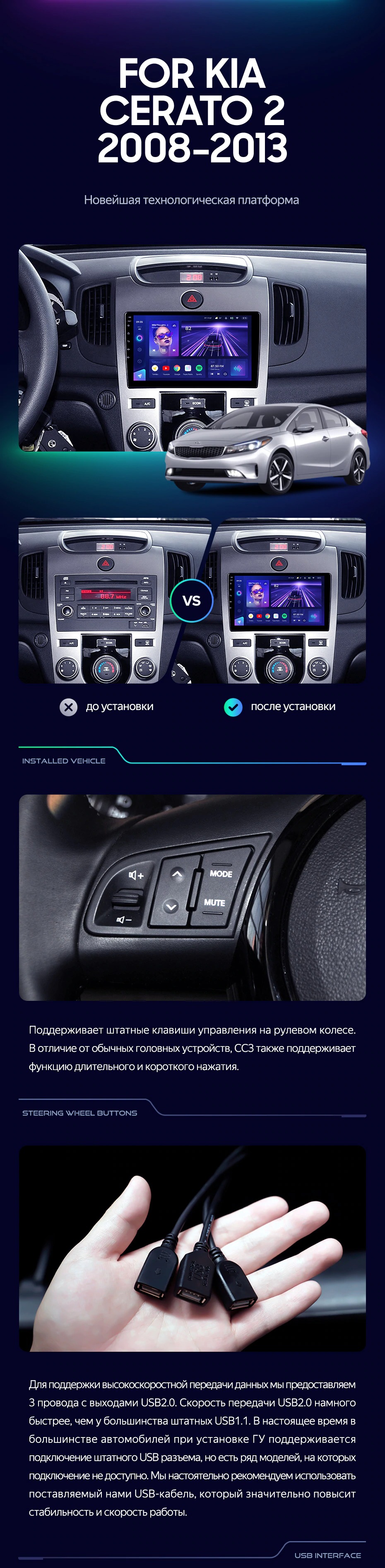 Штатная магнитола Teyes CC3 4/32 Kia Cerato 2 TD (2008-2013) F1 - купить всего за 39 300 руб. в интернет-магазине в Ростове Teyes.com.ru. ✓ Самый лучший выбор мультимедиа ✓ Лучшая замена штатному ГУ ✓ Тел. +7 (800) 775-31-74
