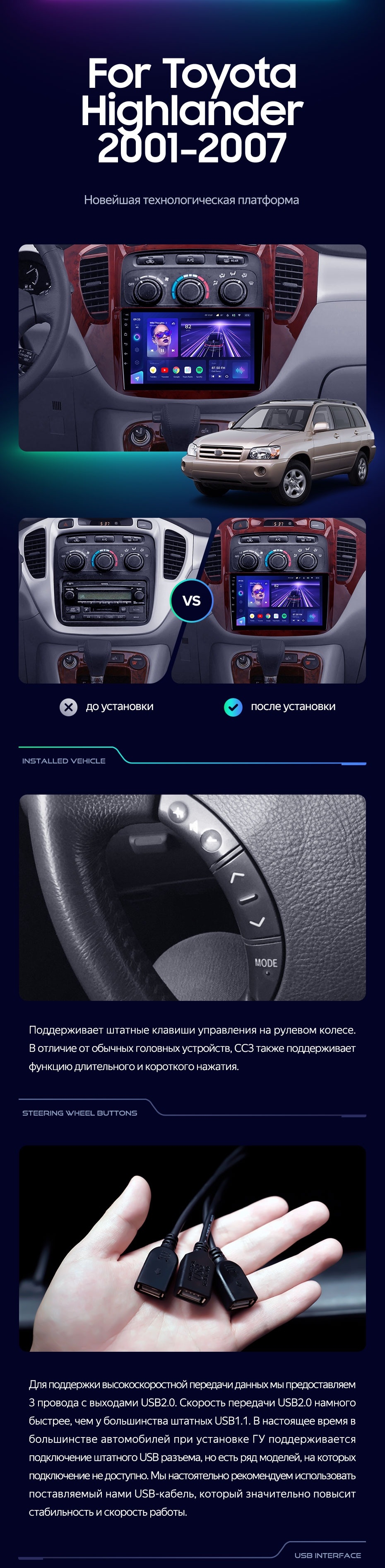 Штатная магнитола Teyes CC3 4/32 Toyota Highlander 1 XU20 (2001-2007) - купить всего за 41 400 руб. в интернет-магазине в Ростове Teyes.com.ru. ✓ Самый лучший выбор мультимедиа ✓ Лучшая замена штатному ГУ ✓ Тел. +7 (800) 775-31-74