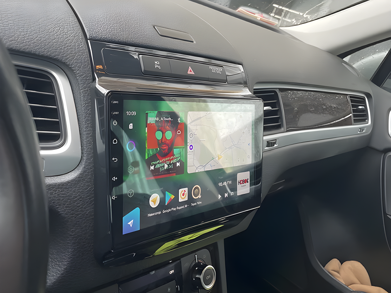Защитное стекло 2,5D имеет слегка скругленные грани. Эта особенность делает его практически незаметным в районе краев экрана магнитолы, где он ограничен рамками корпуса.