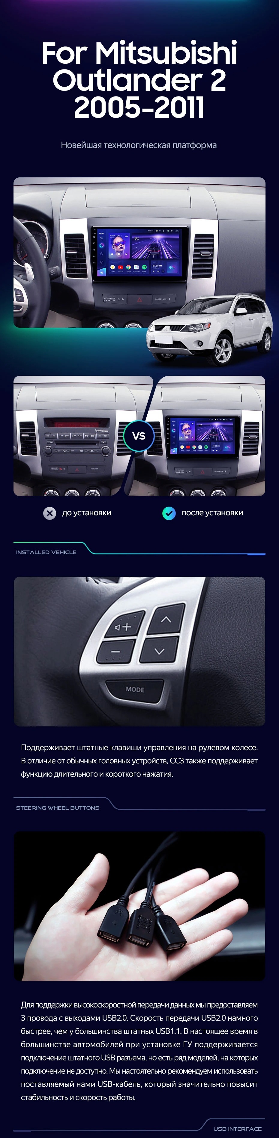 Штатная магнитола Teyes CC3 6/128 Mitsubishi Outlander 2 (2005-2011) Тип-A - купить всего за 43 100 руб. в интернет-магазине в Ростове Teyes.com.ru. ✓ Самый лучший выбор мультимедиа ✓ Лучшая замена штатному ГУ ✓ Тел. +7 (800) 775-31-74