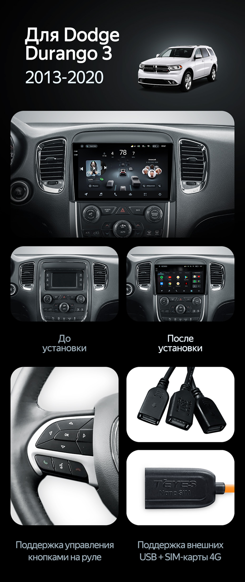 Штатная магнитола Teyes CC3L 4/32 Dodge Durango 3 (2013-2020) - купить всего за 30 600 руб. в интернет-магазине в Ростове Teyes.com.ru. ✓ Самый лучший выбор мультимедиа ✓ Лучшая замена штатному ГУ ✓ Тел. +7 (800) 775-31-74