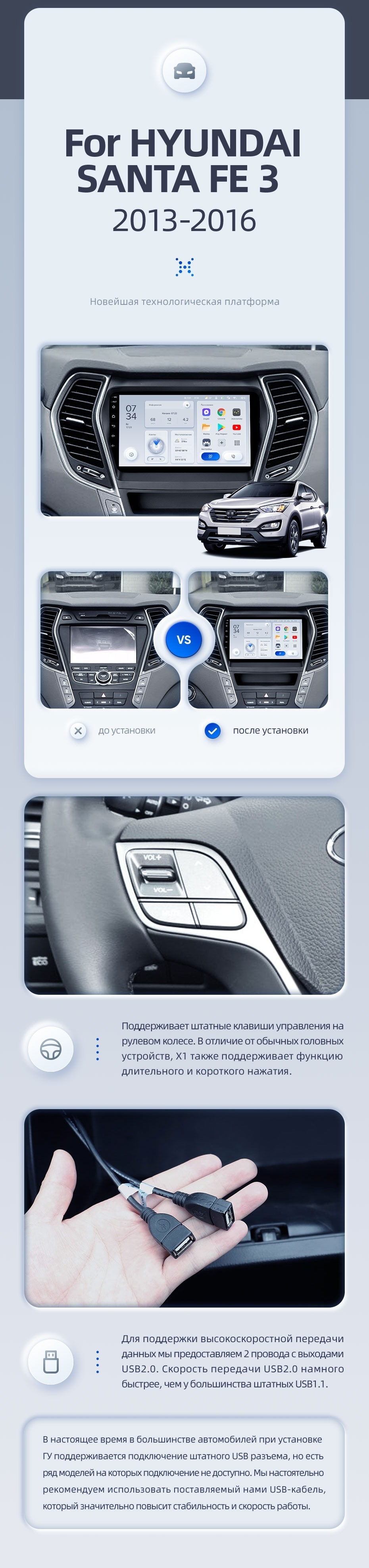 Штатная магнитола Teyes CC3L WiFi 2/32 Hyundai Santa Fe 3 (2013-2016) Тип-A - купить всего за 21 800 руб. в интернет-магазине в Ростове Teyes.com.ru. ✓ Самый лучший выбор мультимедиа ✓ Лучшая замена штатному ГУ ✓ Тел. +7 (800) 775-31-74