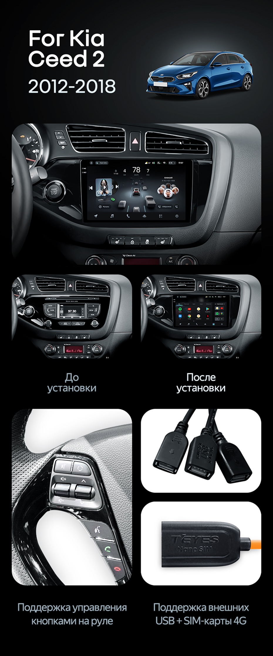 Штатная магнитола Teyes CC4 Pro 12/256 Kia Ceed 2 JD (2012-2018) - купить всего за 73 430 руб. в интернет-магазине в Ростове Teyes.com.ru. ✓ Самый лучший выбор мультимедиа ✓ Лучшая замена штатному ГУ ✓ Тел. +7 (800) 775-31-74