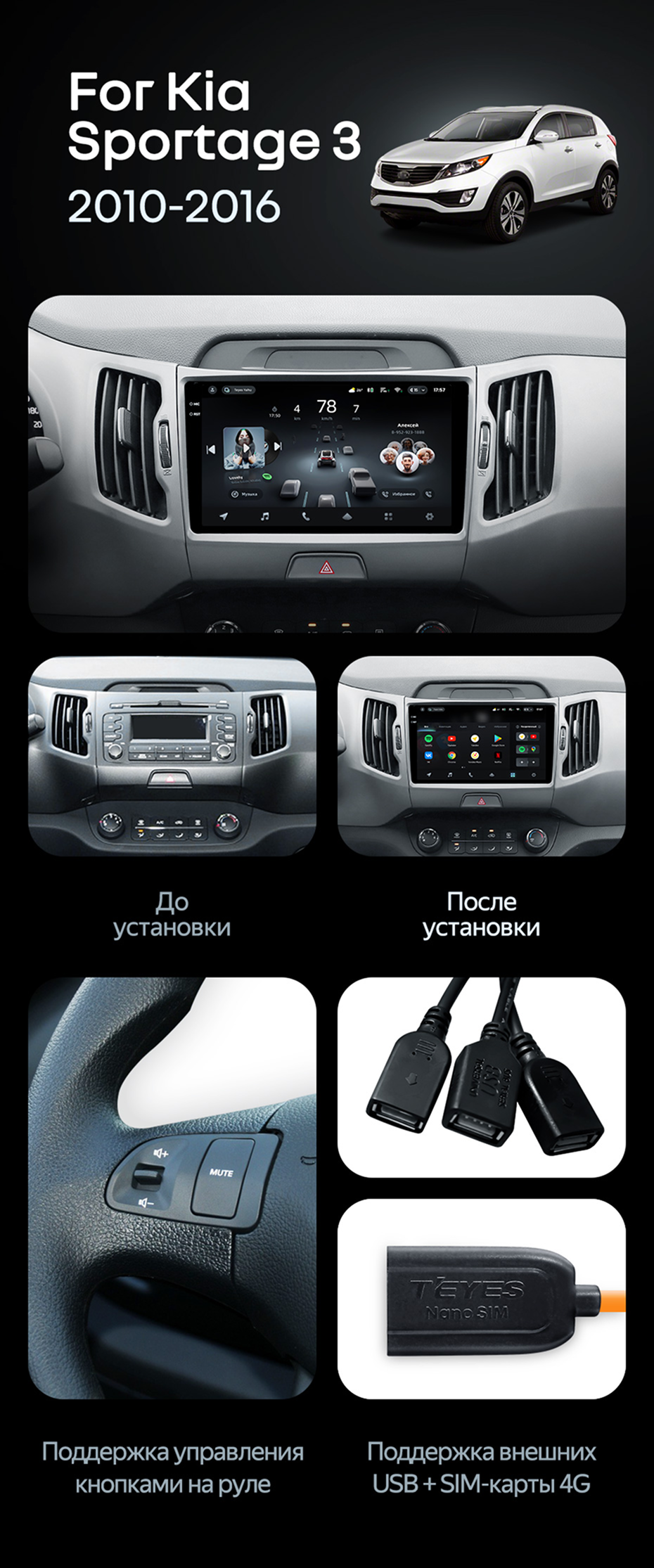 Штатная магнитола Teyes CC4 Pro 12/256 Kia Sportage 3 SL (2010-2016) Тип-C - купить всего за 68 170 руб. в интернет-магазине в Ростове Teyes.com.ru. ✓ Самый лучший выбор мультимедиа ✓ Лучшая замена штатному ГУ ✓ Тел. +7 (800) 775-31-74