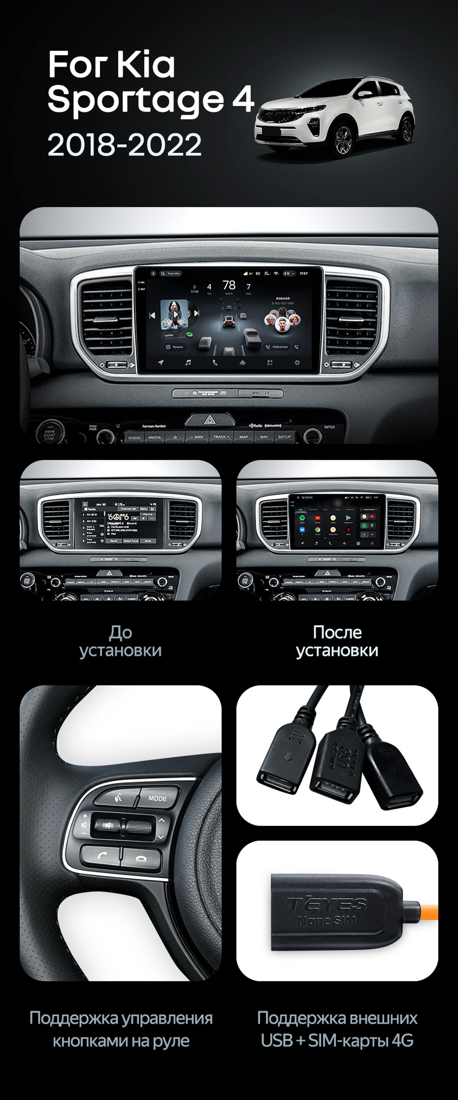 Штатная магнитола Teyes CC4 Pro 12/256 Kia Sportage 4 QL (2018-2022) Тип-A - купить всего за 74 582 руб. в интернет-магазине в Ростове Teyes.com.ru. ✓ Самый лучший выбор мультимедиа ✓ Лучшая замена штатному ГУ ✓ Тел. +7 (800) 775-31-74