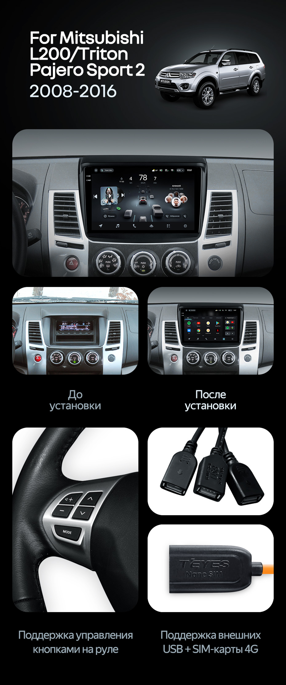 Штатная магнитола Teyes CC4 Pro 12/256 Mitsubishi L200 (2008-2016) - купить всего за 73 370 руб. в интернет-магазине в Ростове Teyes.com.ru. ✓ Самый лучший выбор мультимедиа ✓ Лучшая замена штатному ГУ ✓ Тел. +7 (800) 775-31-74