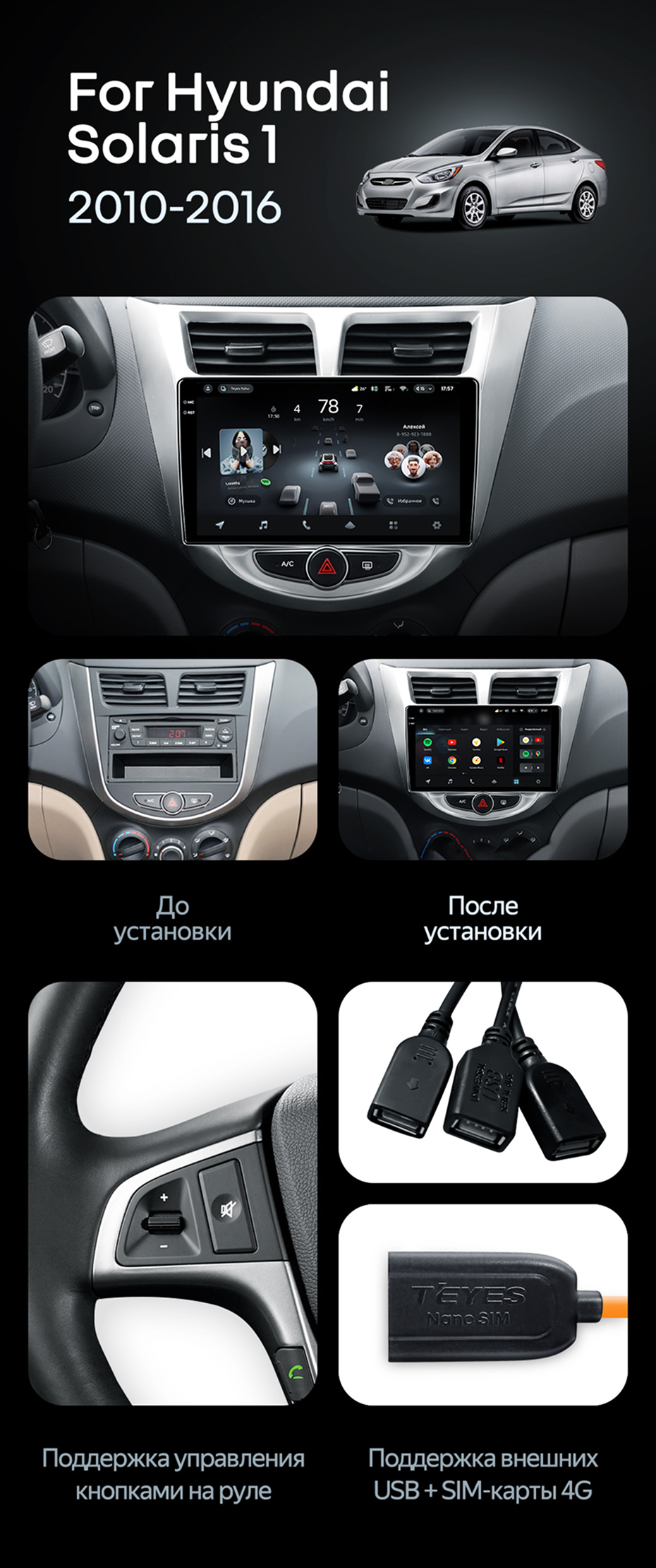 Штатная магнитола Teyes CC4 Pro 8/128 Hyundai Solaris 1 (2010-2016) F1 - купить всего за 63 970 руб. в интернет-магазине в Ростове Teyes.com.ru. ✓ Самый лучший выбор мультимедиа ✓ Лучшая замена штатному ГУ ✓ Тел. +7 (800) 775-31-74
