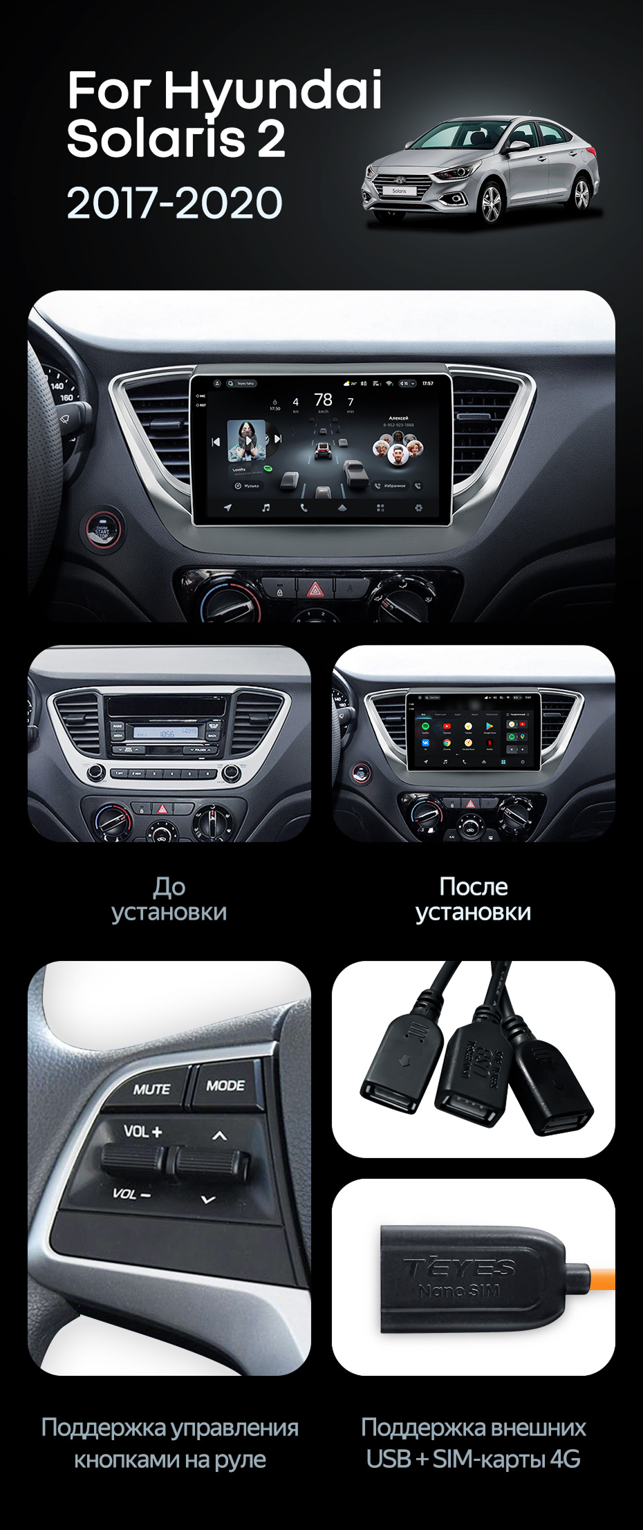 Штатная магнитола Teyes CC4 Pro 8/128 Hyundai Solaris 2 (2017-2020) F1 Тип-A - купить всего за 63 690 руб. в интернет-магазине в Ростове Teyes.com.ru. ✓ Самый лучший выбор мультимедиа ✓ Лучшая замена штатному ГУ ✓ Тел. +7 (800) 775-31-74