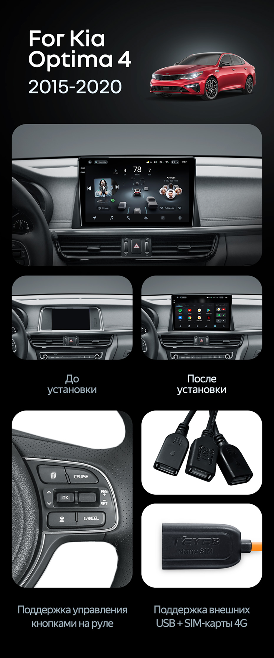 Штатная магнитола Teyes CC4 Pro 8/128 Kia Optima 4 JF (2015-2020) Тип-B - купить всего за 67 050 руб. в интернет-магазине в Ростове Teyes.com.ru. ✓ Самый лучший выбор мультимедиа ✓ Лучшая замена штатному ГУ ✓ Тел. +7 (800) 775-31-74