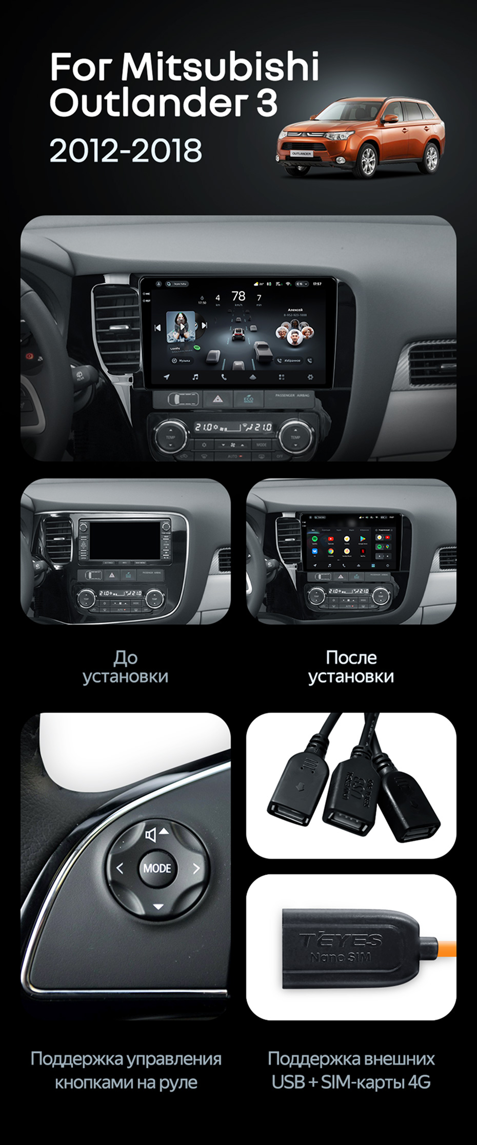 Штатная магнитола Teyes CC4 Pro 8/128 Mitsubishi Outlander 3 GF0W GG0W (2012-2018) Тип-A - купить всего за 56 200 руб. в интернет-магазине в Ростове Teyes.com.ru. ✓ Самый лучший выбор мультимедиа ✓ Лучшая замена штатному ГУ ✓ Тел. +7 (800) 775-31-74