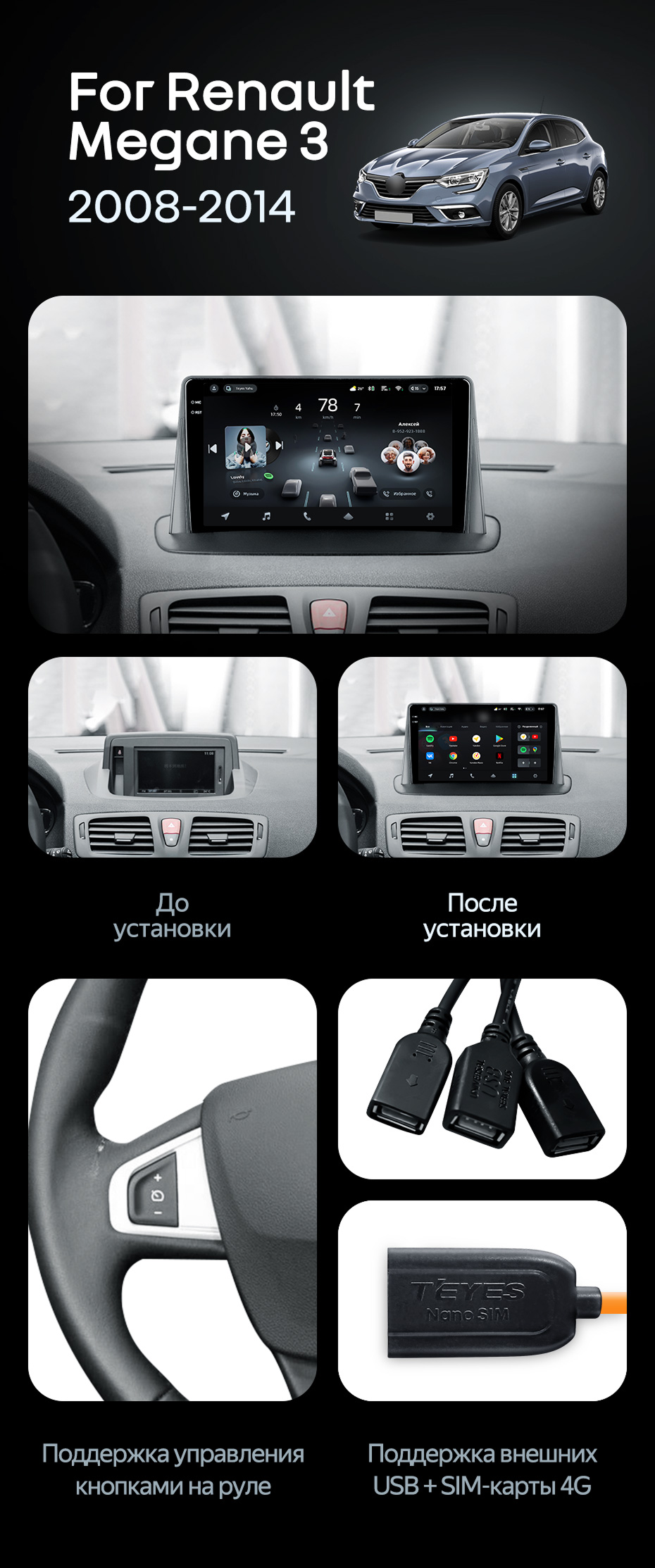 Штатная магнитола Teyes CC4 Pro 8/128 Renault Megane 3 (2008-2014) - купить всего за 65 440 руб. в интернет-магазине в Ростове Teyes.com.ru. ✓ Самый лучший выбор мультимедиа ✓ Лучшая замена штатному ГУ ✓ Тел. +7 (800) 775-31-74
