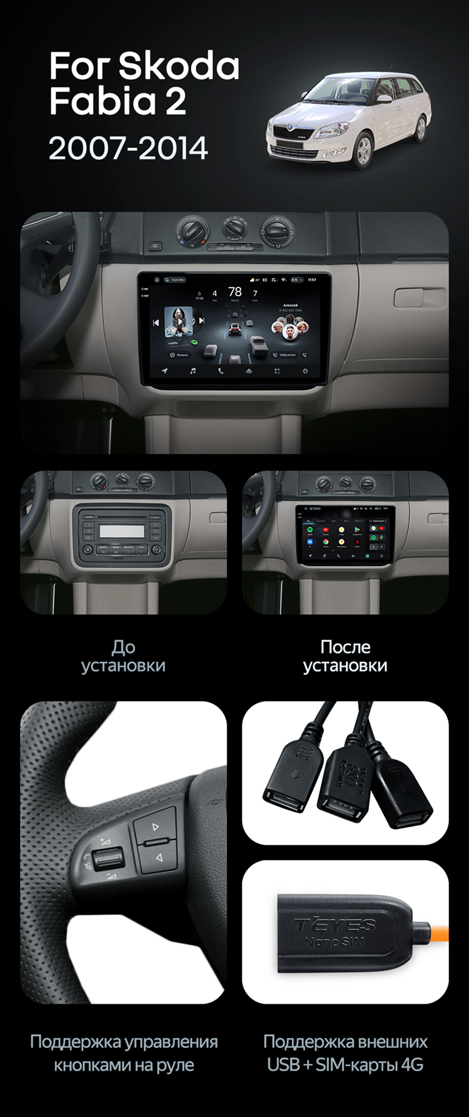 Штатная магнитола Teyes CC4 Pro 8/128 Skoda Fabia 2 (2007-2014) - купить всего за 65 540 руб. в интернет-магазине в Ростове Teyes.com.ru. ✓ Самый лучший выбор мультимедиа ✓ Лучшая замена штатному ГУ ✓ Тел. +7 (800) 775-31-74
