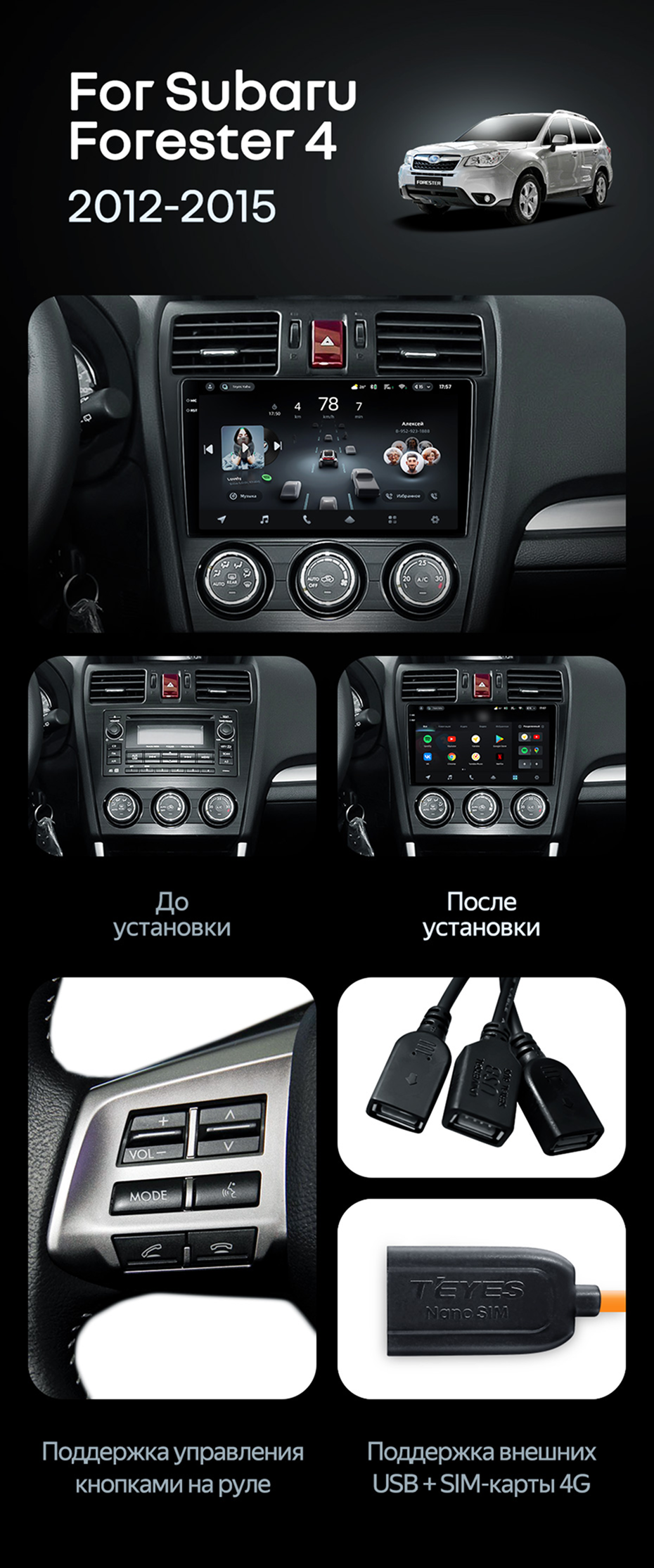 Штатная магнитола Teyes CC4 Pro 8/128 Subaru Forester 4 SJ (2012-2015) Тип-A - купить всего за 65 440 руб. в интернет-магазине в Ростове Teyes.com.ru. ✓ Самый лучший выбор мультимедиа ✓ Лучшая замена штатному ГУ ✓ Тел. +7 (800) 775-31-74