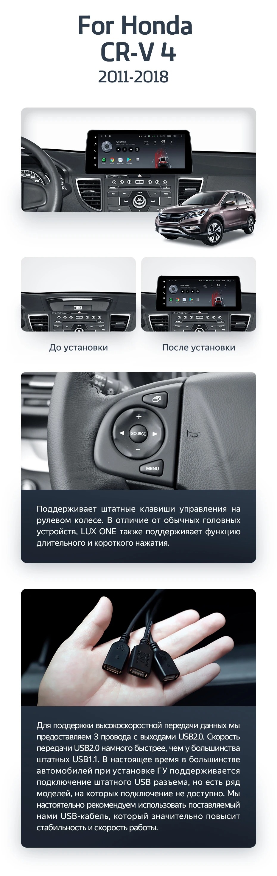 Штатная магнитола Teyes LUX ONE 6/128 Honda CR-V 4 RM RE (2011-2018) Тип-C - купить всего за 46 800 руб. в интернет-магазине в Ростове Teyes.com.ru. ✓ Самый лучший выбор мультимедиа ✓ Лучшая замена штатному ГУ ✓ Тел. +7 (800) 775-31-74