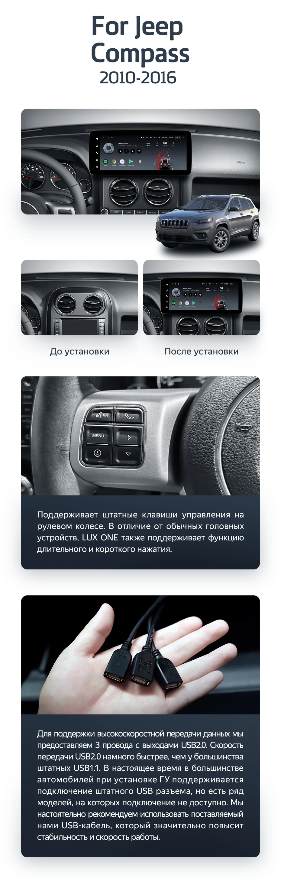 Штатная магнитола Teyes LUX ONE 6/128 Jeep Compass MK (2010-2016) - купить всего за 53 000 руб. в интернет-магазине в Ростове Teyes.com.ru. ✓ Самый лучший выбор мультимедиа ✓ Лучшая замена штатному ГУ ✓ Тел. +7 (800) 775-31-74