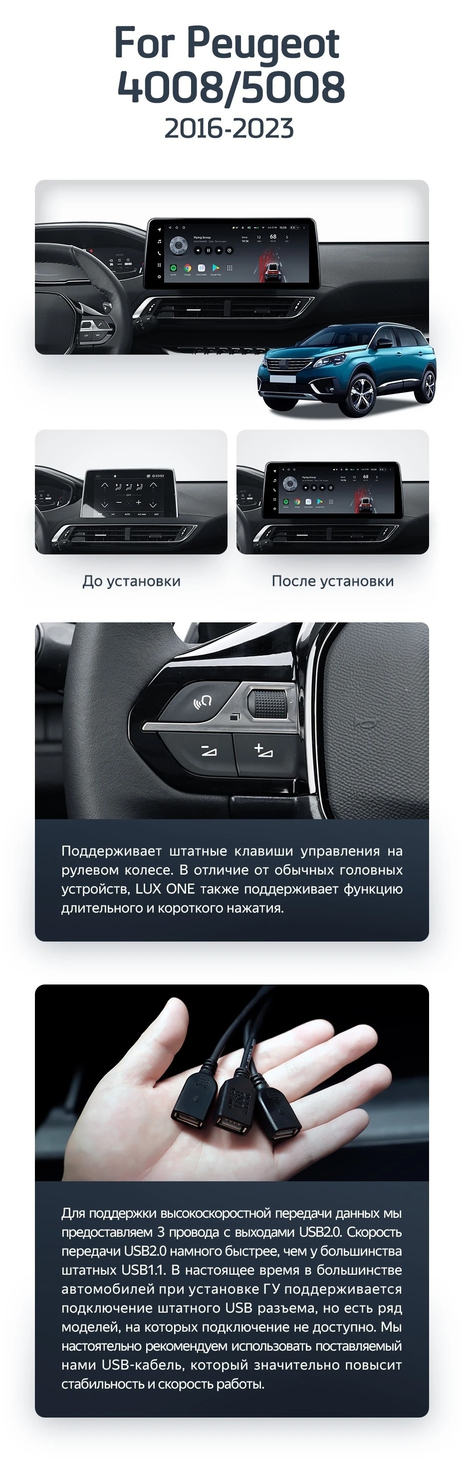 Штатная магнитола Teyes LUX ONE 6/128 Peugeot 4008 (2016-2023) - купить всего за 48 400 руб. в интернет-магазине в Ростове Teyes.com.ru. ✓ Самый лучший выбор мультимедиа ✓ Лучшая замена штатному ГУ ✓ Тел. +7 (800) 775-31-74
