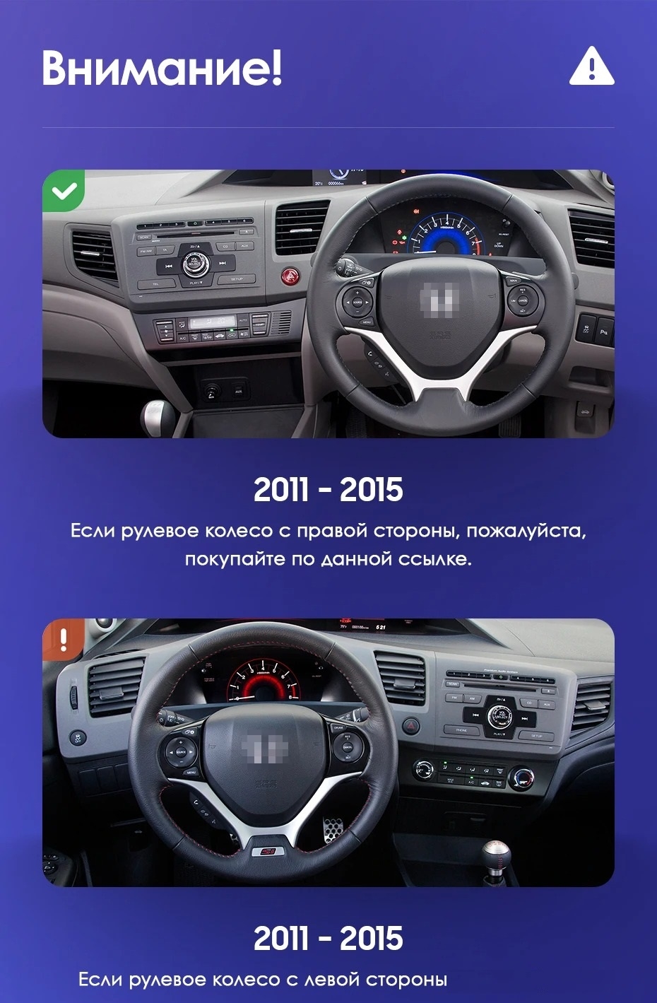 Полный комплект установки магнитолы Teyes с рамкой и проводкой можно выбрать в каталоге штатных магнитол Civic 9 FB FK FD (2011-2015).