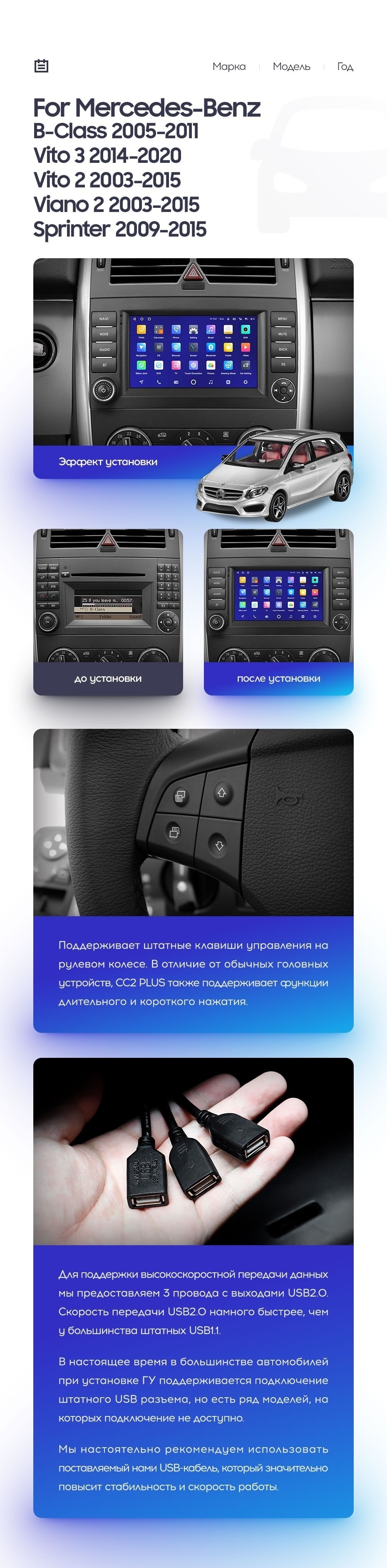 Полный комплект установки магнитолы Teyes с рамкой и проводкой можно выбрать в каталоге штатных магнитол Mercedes-Benz B-Class T245 (2005-2011).
